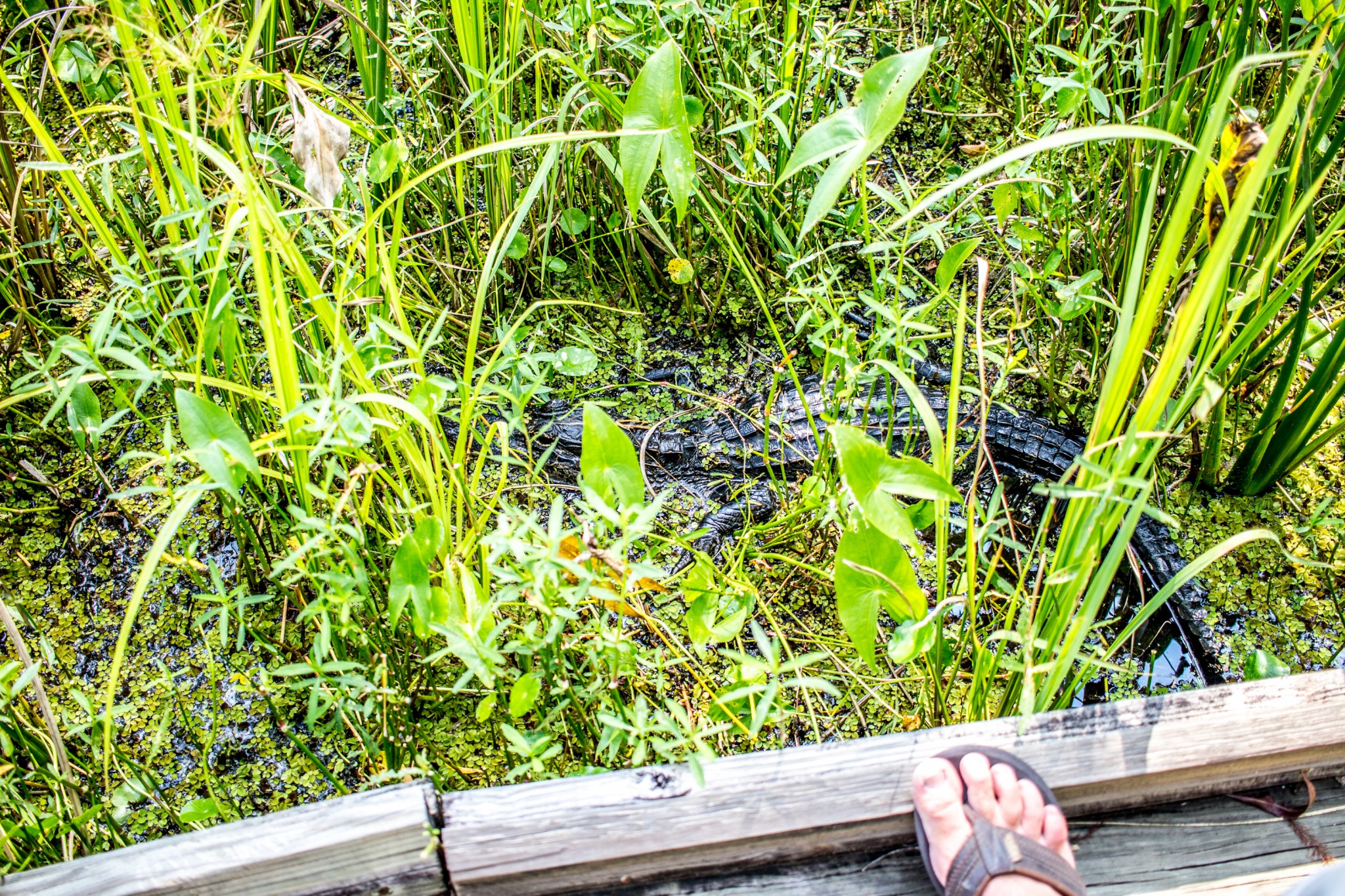 The park is also full of larger wildlife, and you may inadvertently find yourself a lot closer to them than you would on a swamp tour too! Tom was taking a landscape shot when he looked down with his camera in hand and saw this alligator just inches away from his foot!